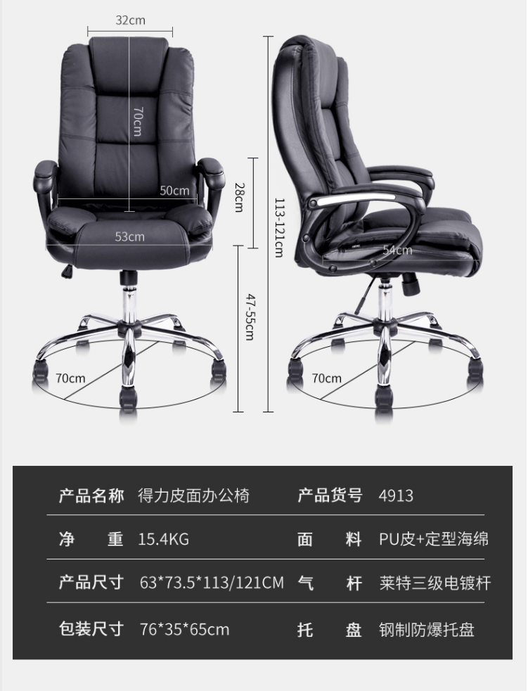 商品名称:得力(deli)4913 电脑椅/办公椅/转椅 人体工学皮椅子 升降座椅