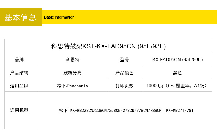 商品名称:科思特 95E(鼓架) 适用松下 KX-MB228CN/238CN/258CN/278CN/778CN/788CN KX-MB271/781黑色 专业版