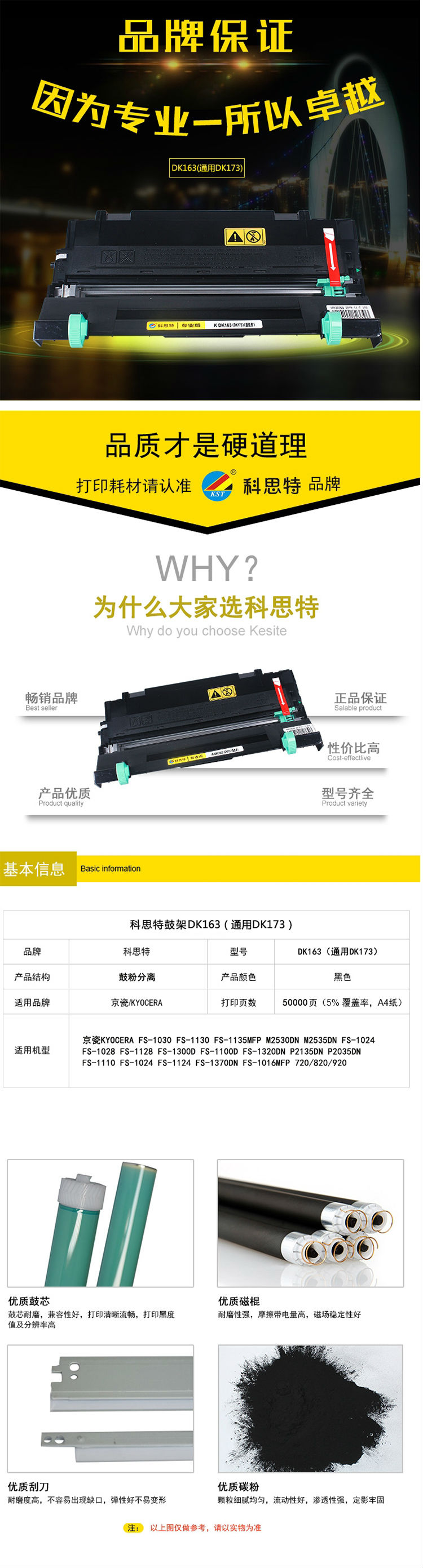 商品名称:科思特 DK163/DK173/DK1103/DK1133(鼓架) 适用京瓷 FS-1030 FS-1130 FS-1135MFP M2530DN M2535DN FS-1024黑色 专业版