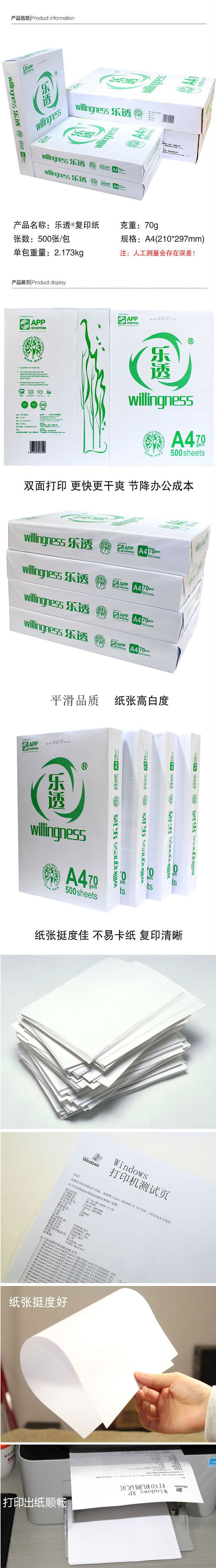 商品名称:乐透 A4 70G 复印打印纸 500张/包 8包/箱