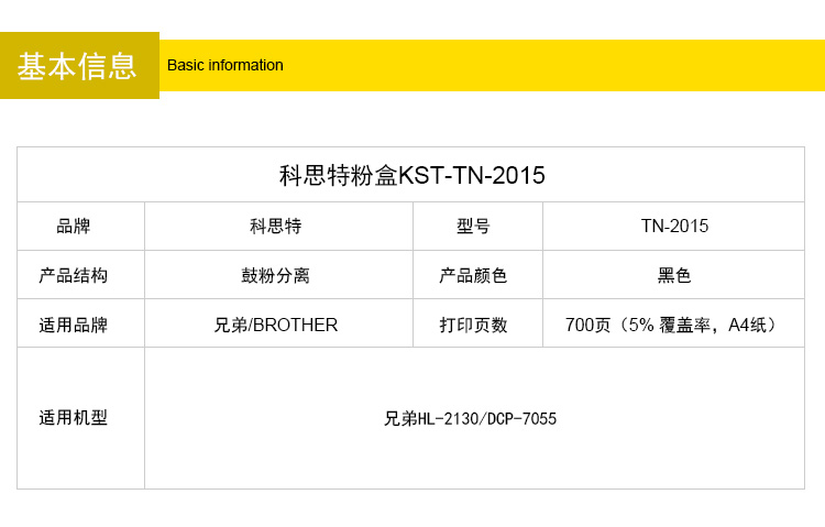 商品名称:科思特 TN2015(粉盒)适用兄弟 HL-2130/DCP-7055黑色 专业版
