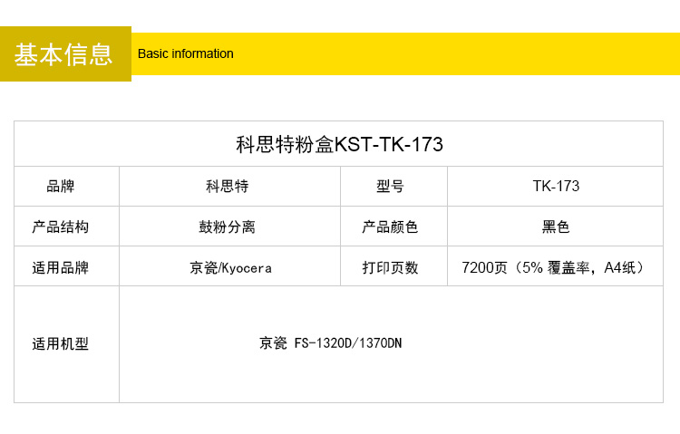 商品名称:科思特 TK173(粉筒) 适用京瓷 FS1320D/1370DN/P2135DN黑色 专业版