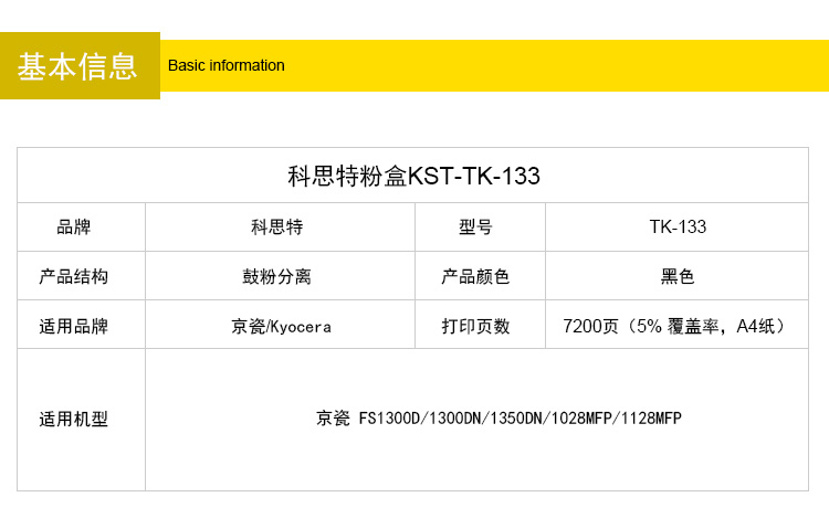 商品名称:科思特 TK133(粉筒) 适用京瓷 FS1300D/1300DN/1350DN/1028MFP/1128MFP黑色 专业版