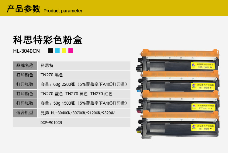 科思特 TN270(粉盒)(黑) 适用兄弟 HL-3040CN/3070CW 专业版