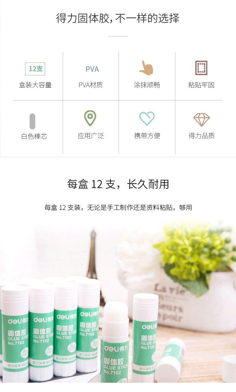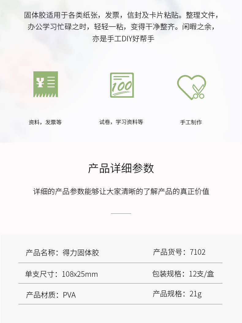 商品名称:得力(deli)7102高粘度PVA固体胶棒 21g 12支/盒
