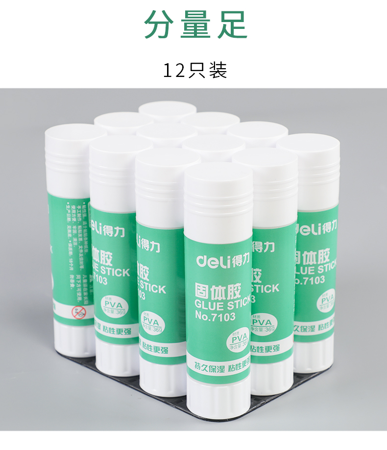 商品名称:得力7103固体胶棒 大号36g高粘度固体胶 (单位:支)