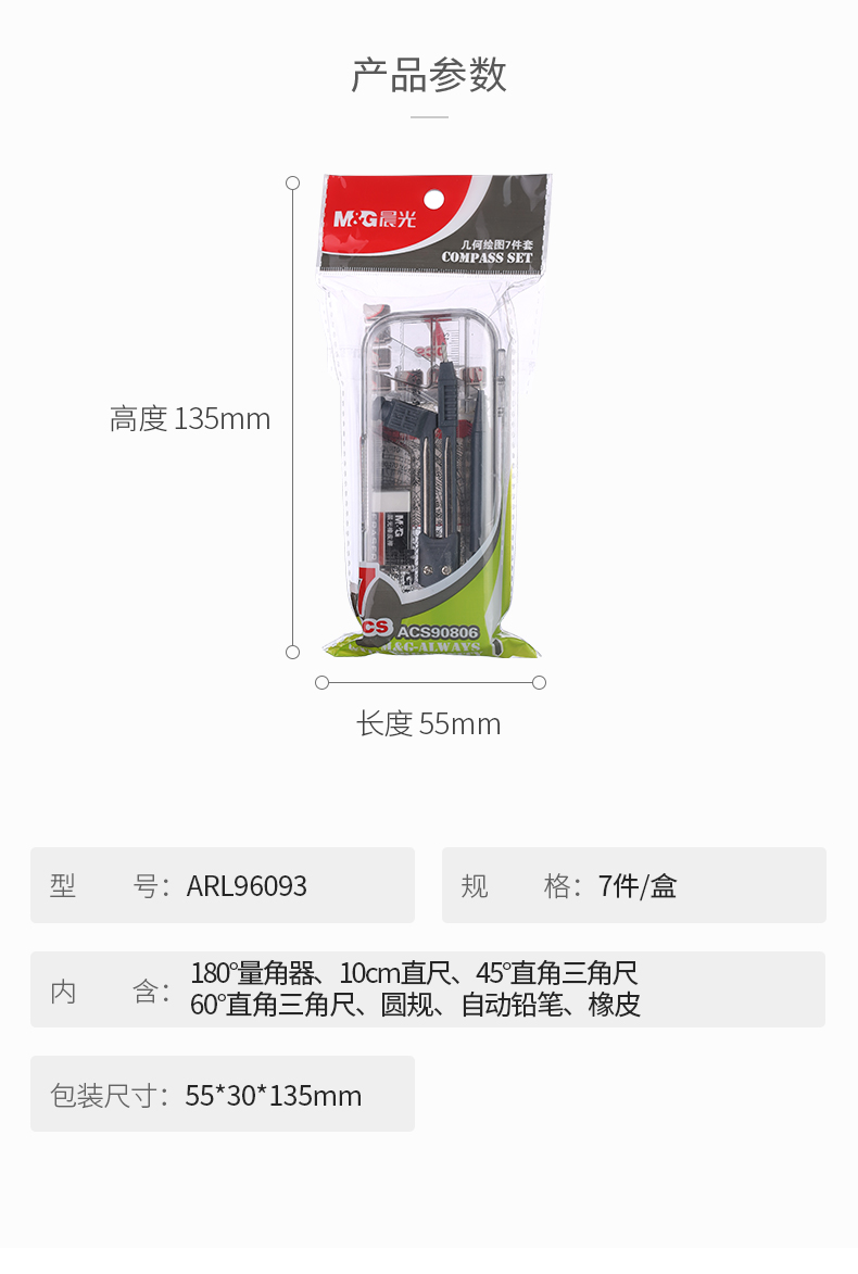 商品名称:晨光七件套装圆规ACS90806