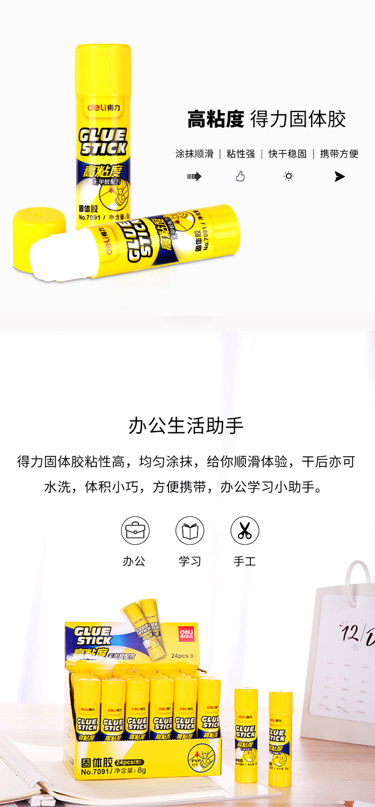 得力(deli) 7091 8g高粘度PVP固体胶 无甲醛快干耐用胶棒 24支/盒(单位:盒)