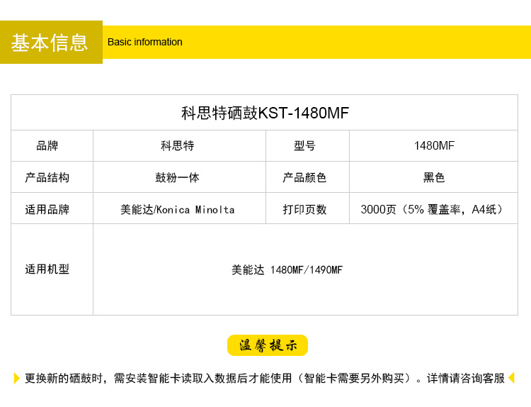 商品名称:科思特 1490硒鼓 适用柯尼卡美能达1480MF/1490MF(需配智能卡)黑色 专业版