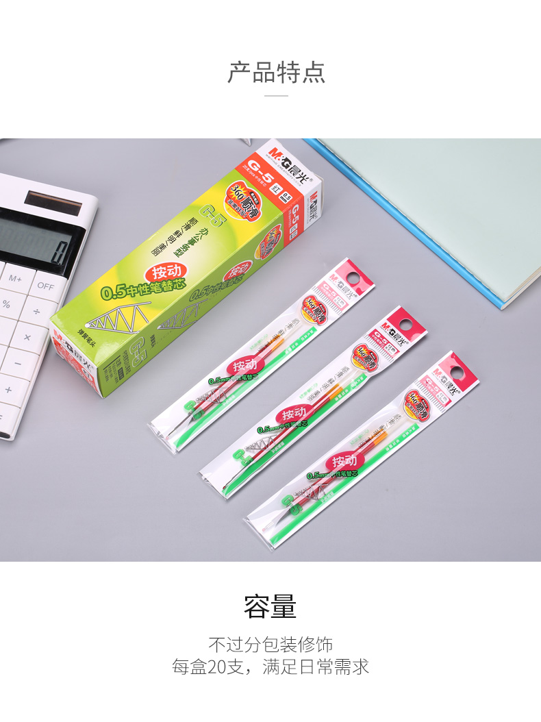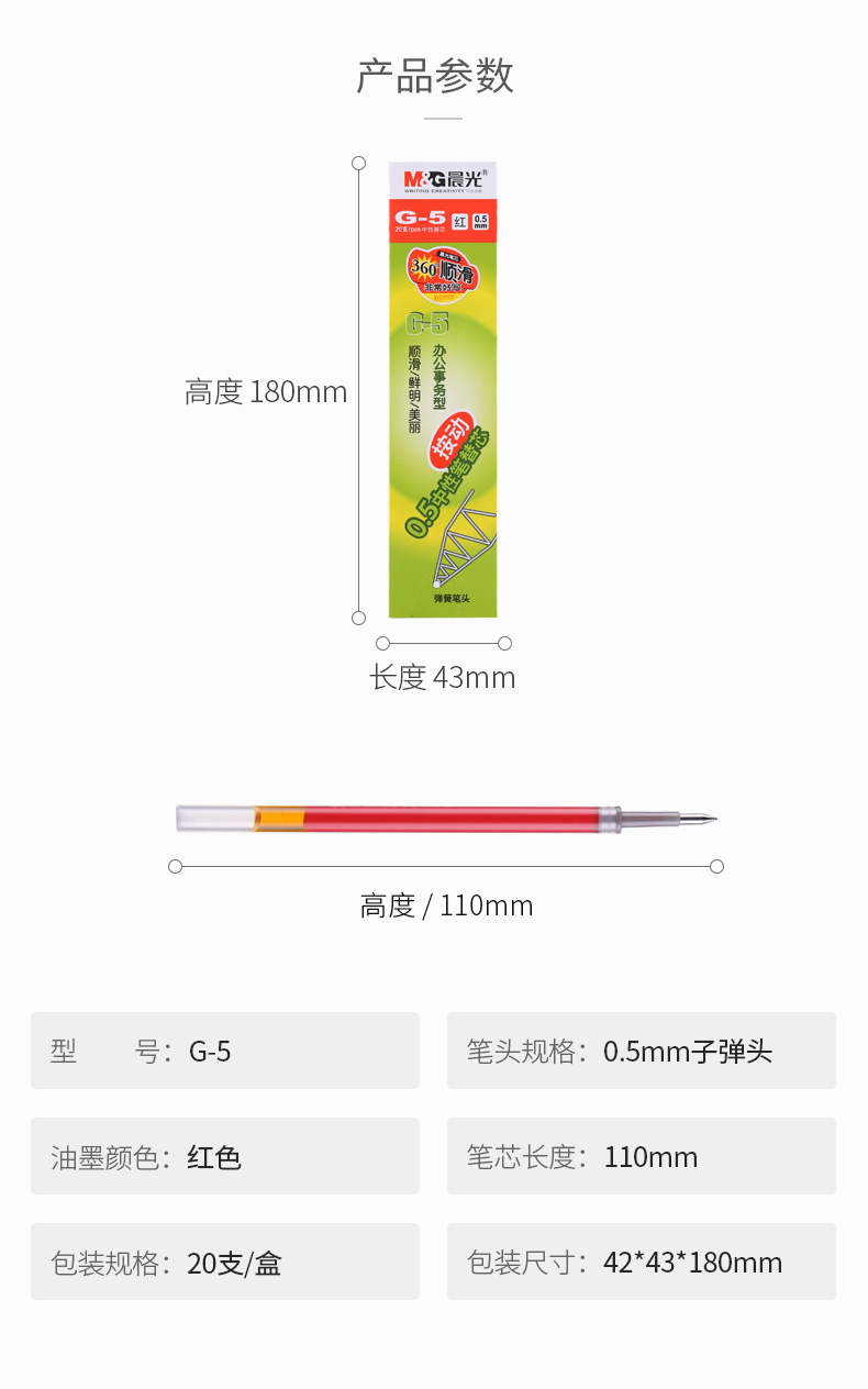 商品名称:晨光中性替芯G-5红0.5 AGR67T02 20支/盒