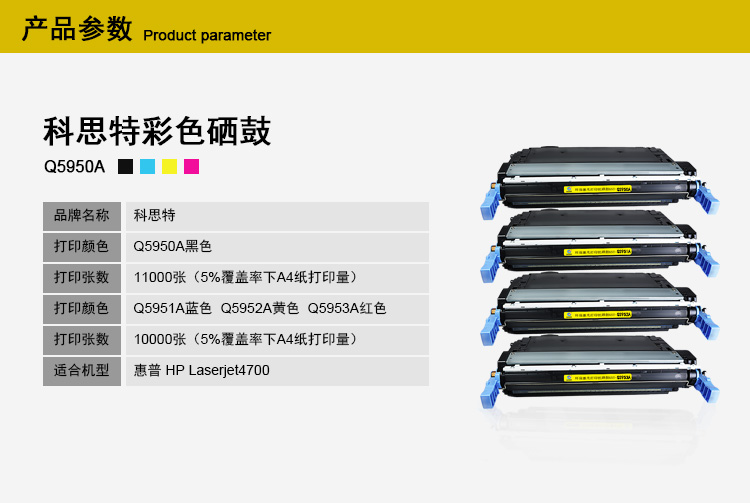 商品名称:科思特 Q5950A(黑)硒鼓 适用惠普 Laserjet4700 专业版