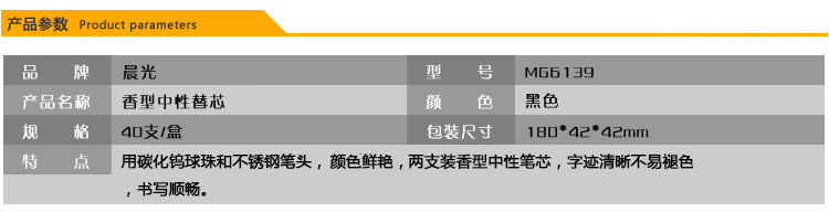 商品名称:晨光中性替芯两支装香型MG6139蓝0.5 40支/盒