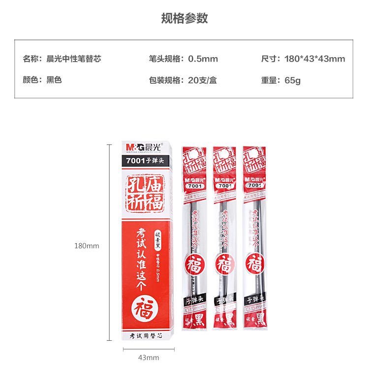 商品名称:晨光陶瓷球珠中性替芯孔庙祈福7001黑0.5 20支/盒