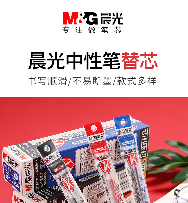 晨光中性替芯考试必备针管MG6150蓝0.5 20支/盒