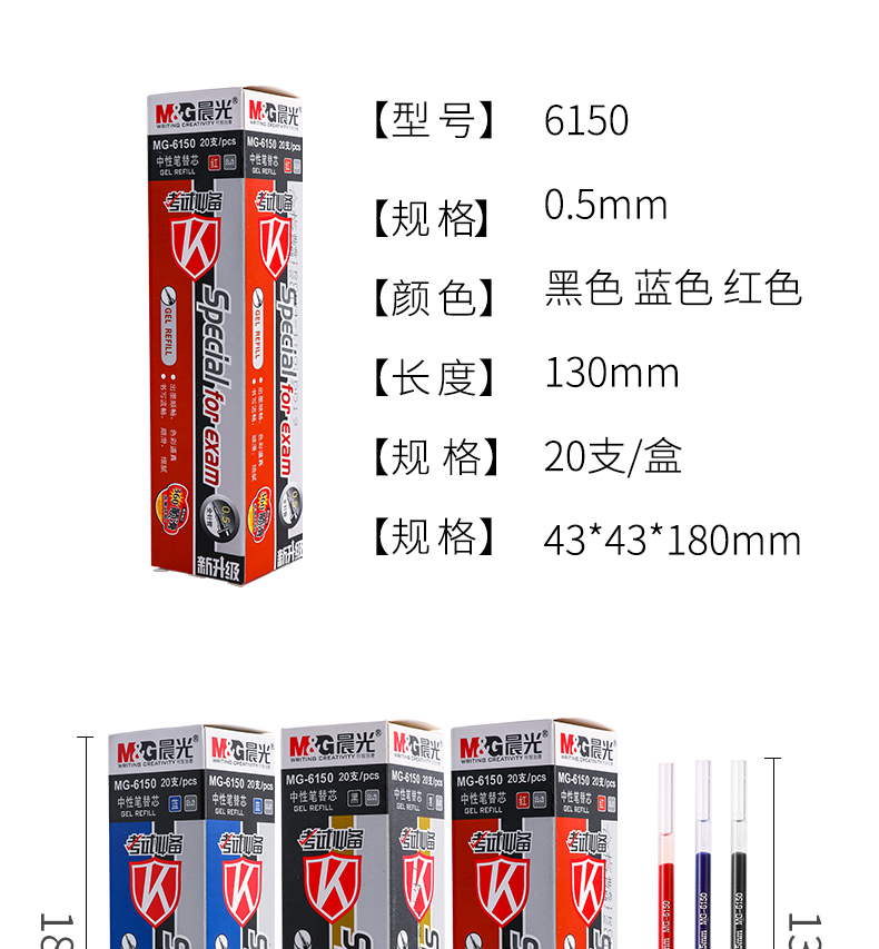 商品名称:晨光中性替芯考试必备针管MG6150蓝0.5 20支/盒