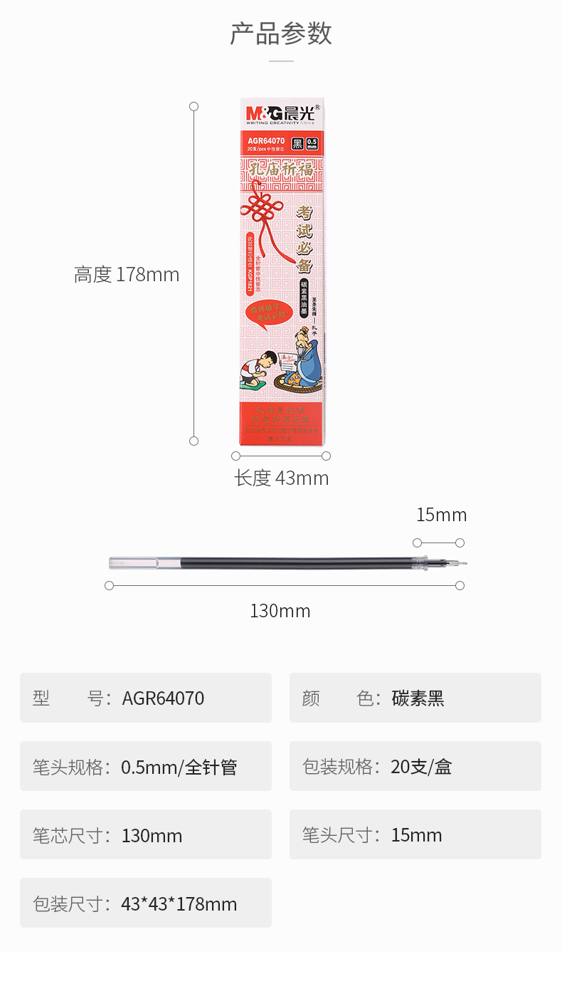 商品名称:晨光中性替芯AGR64070黑0.5 20支/盒