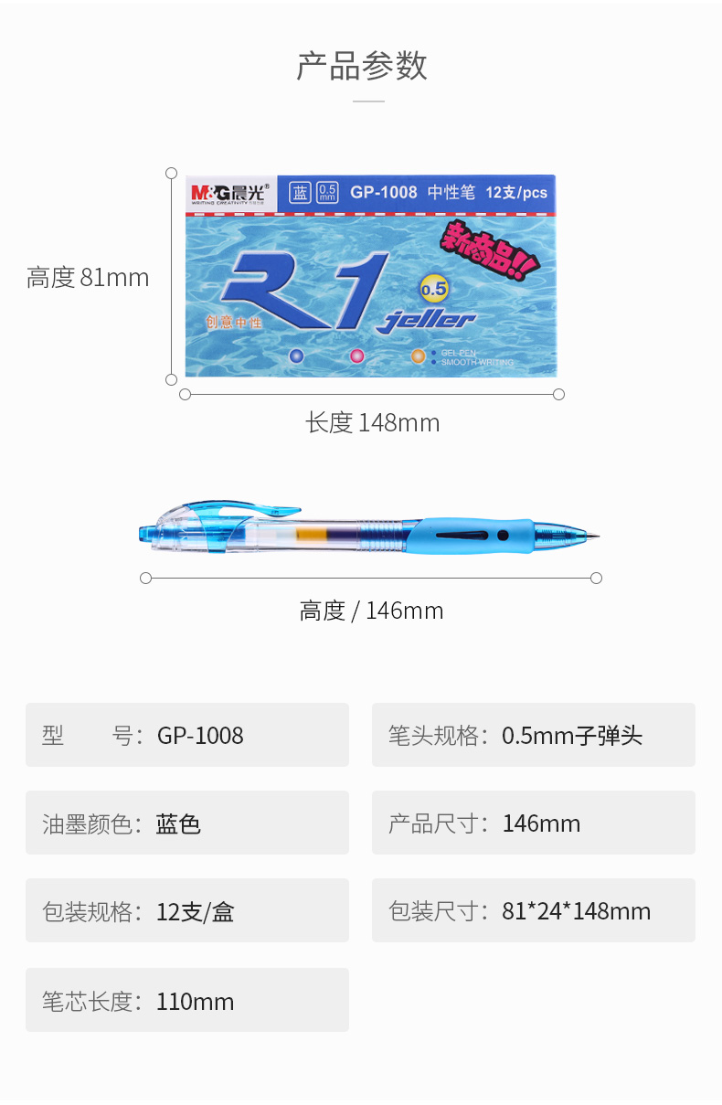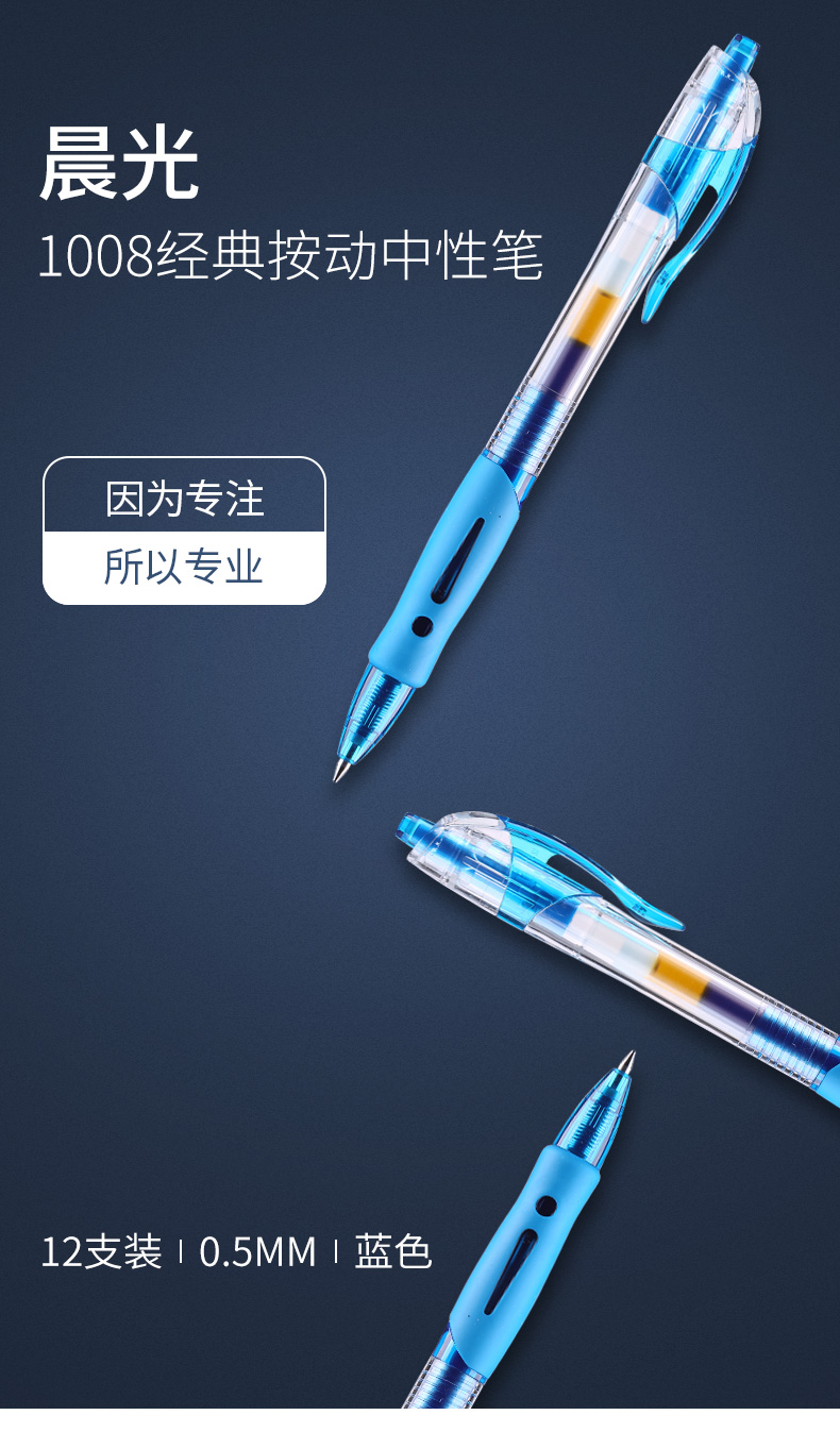 商品名称:晨光中性笔创意者GP1008蓝0.5 12支/盒