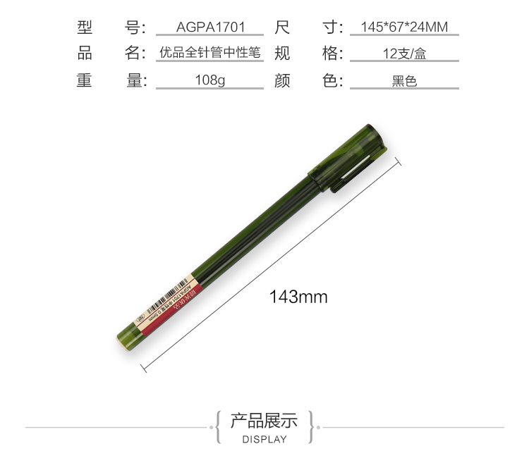 商品名称:晨光中性笔优品AGPA1701黑0.5 12支/盒