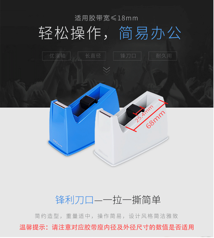 商品名称:得力(deli)811中号胶带座 胶带切割器(胶带宽度 ≤18mm)灰色