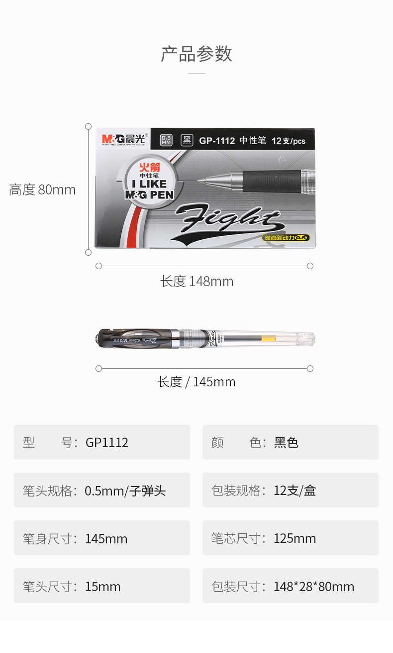 商品名称:晨光中性笔火箭GP1112黑0.5 12支/盒