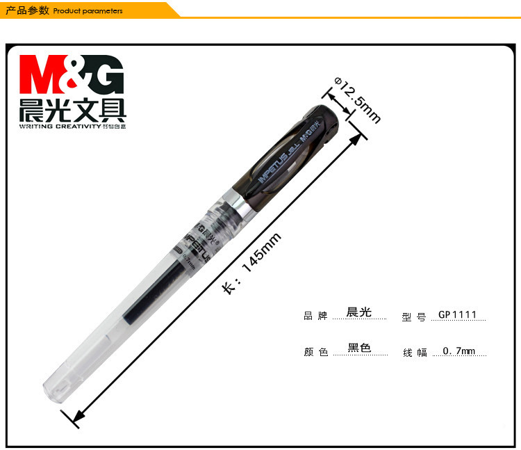 商品名称:晨光中性笔天空5号GP1111黑0.7 12支/盒