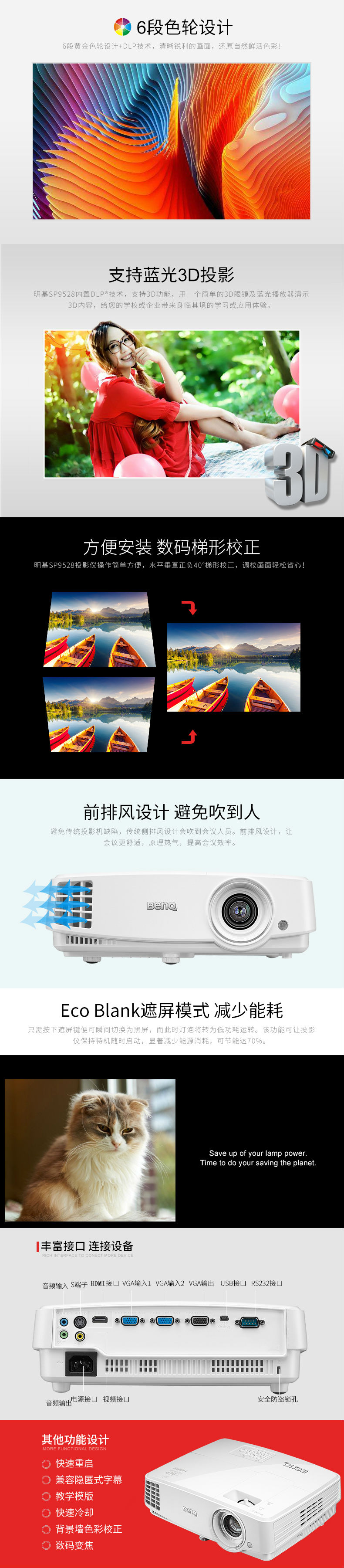 投影 明基(BenQ) SP9528 商务投影仪(高清HDMI )3500流明 官方标配