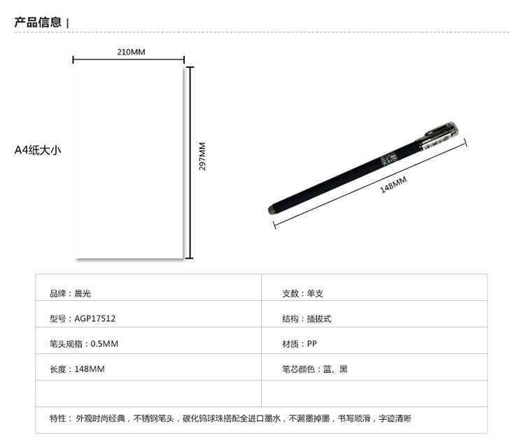 商品名称:晨光中性笔孔庙祈福AGP68602黑0.5 12支/盒