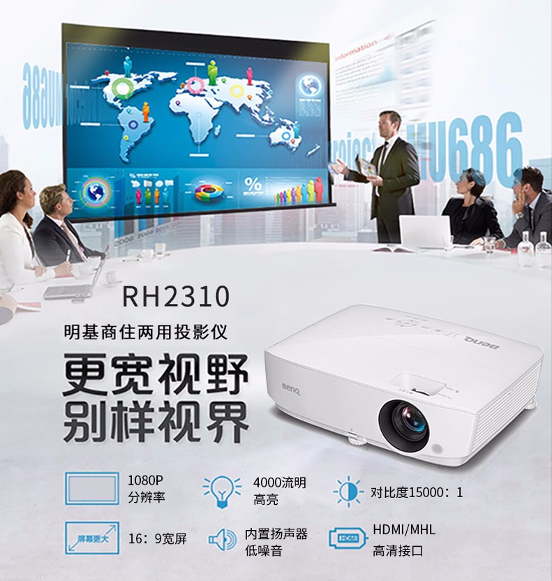 商品名称:明基RH2310明基投影仪 全高清1080P 便携 高清高亮 4000流明白天直投 标配
