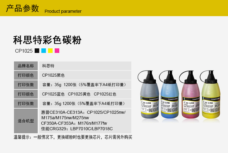 商品名称:科思特 1025 (35G) 碳粉 适用惠普 CP1025/CP1025NW CANON LBP7010C/7018C(NEW) 黑色 专业版