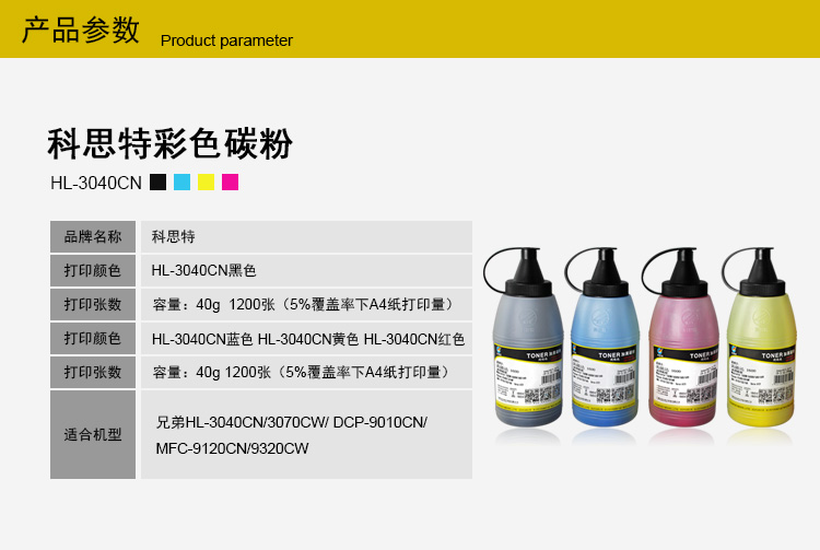 商品名称:科思特 3040/210粉(40G) BK 适用兄弟 HL-3040CN/3070CW/ DCP-9010CN/ MFC-9120CN/9320CW专业版