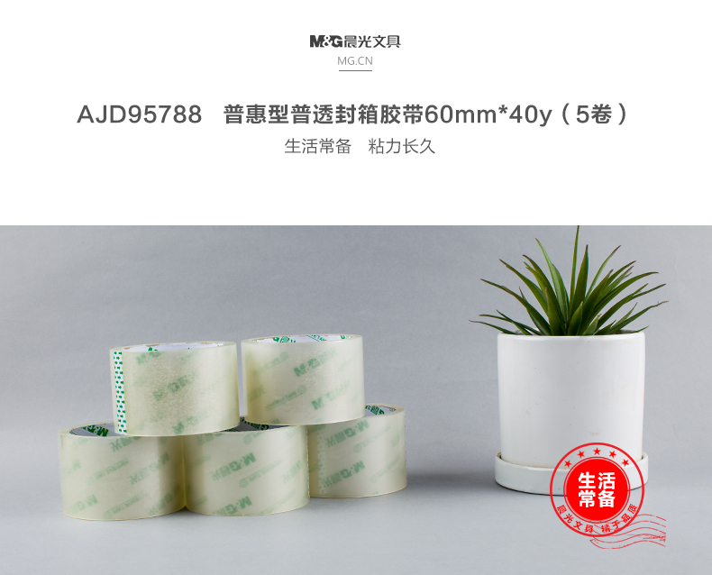 商品名称:晨光普惠普透封箱胶带60mm*40y5卷AJD95788