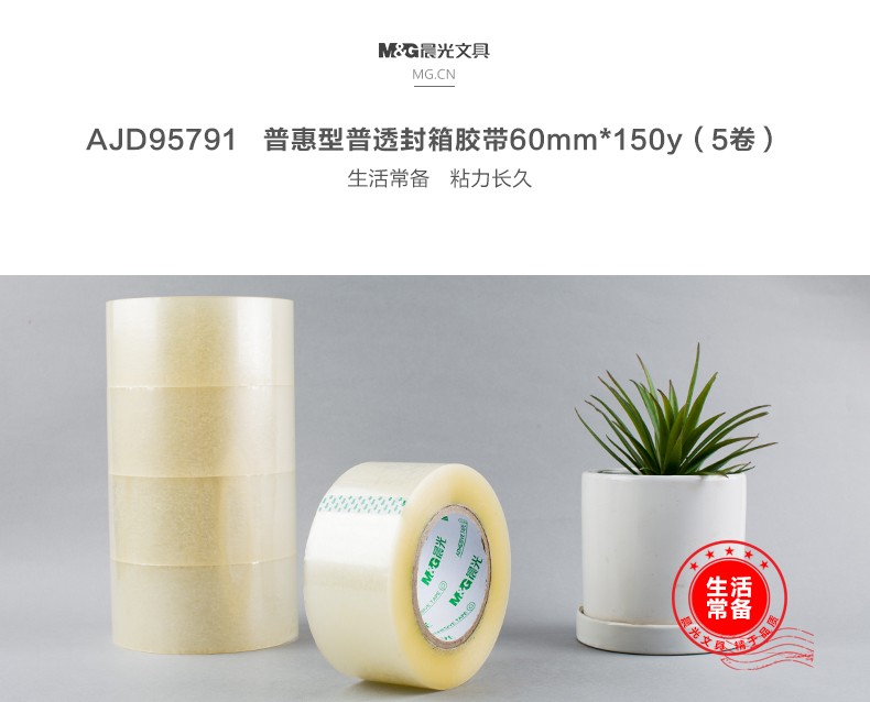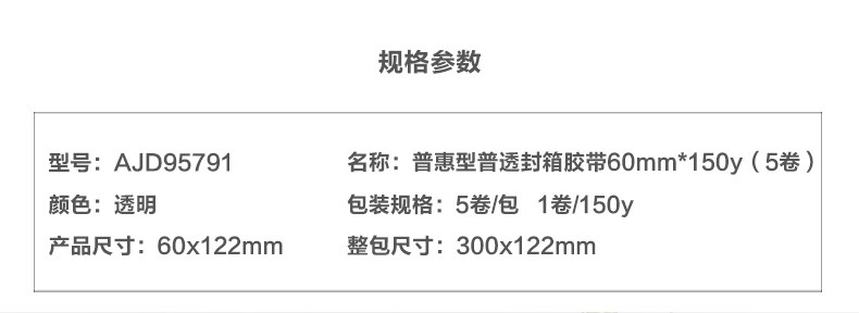 商品名称:晨光普惠普透封箱胶带60mm*150y5卷AJD95791