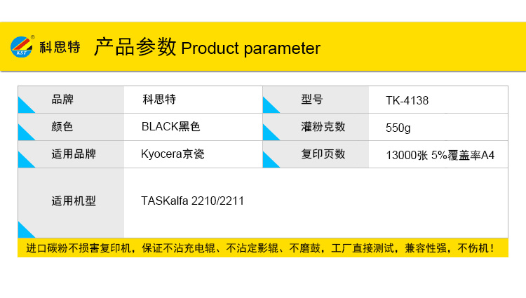 商品名称:科思特 TK-4138粉盒 适用京瓷TASKalfa 2210/2211