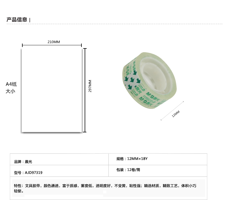 商品名称:晨光文具胶带12mm*18y(12卷)AJD97319