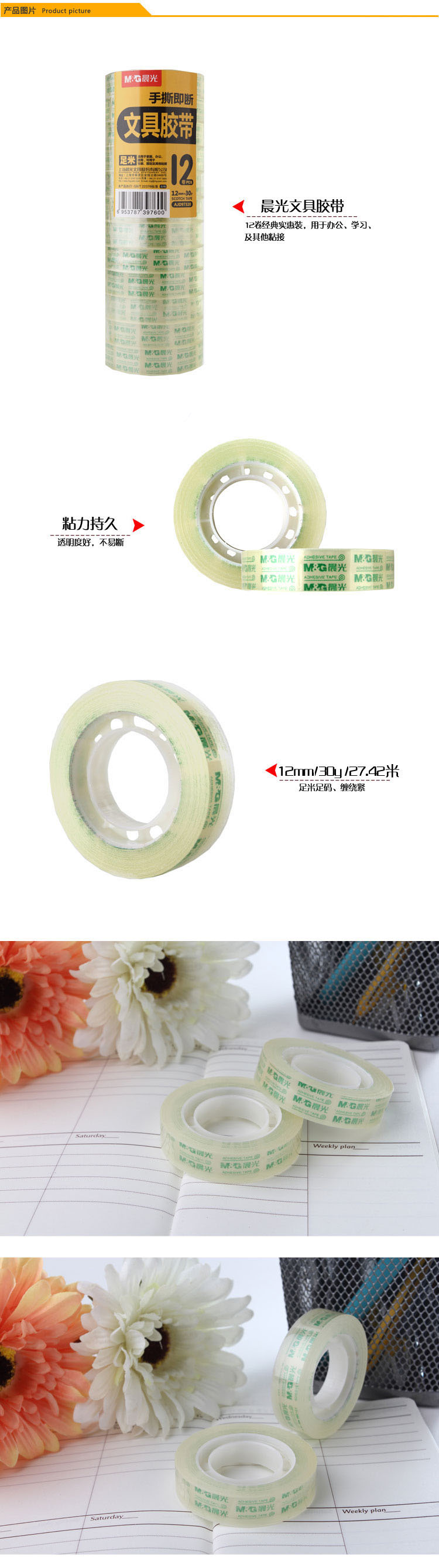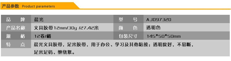 商品名称:晨光文具胶带12mm*30y(12卷)AJD97320