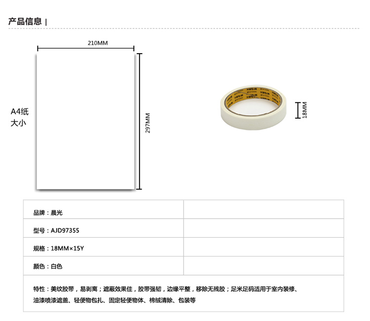 商品名称:晨光美纹胶带18mm*15y(单卷)AJD97355