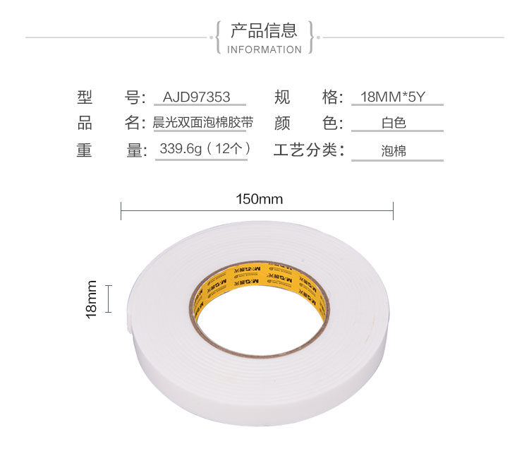 商品名称:晨光双面泡棉胶带18mm*5y(单卷)AJD97353