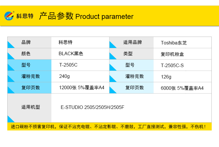 商品名称:科思特 T-2505C-S粉盒 小容量 适用东芝E-STUDIO 2505/2505H/2505F 黑色