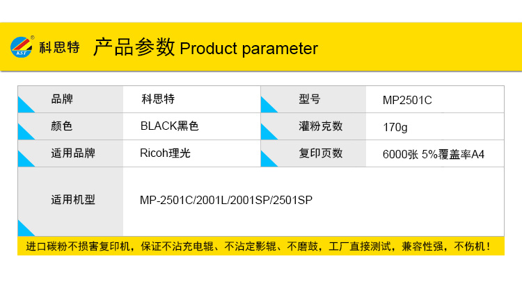 商品名称:科思特MP 2501C粉盒 适用理光MP-2501C/2001L/2001SP/2501SP/1813L/2001/2013/2501/基士得耶1025 黑色