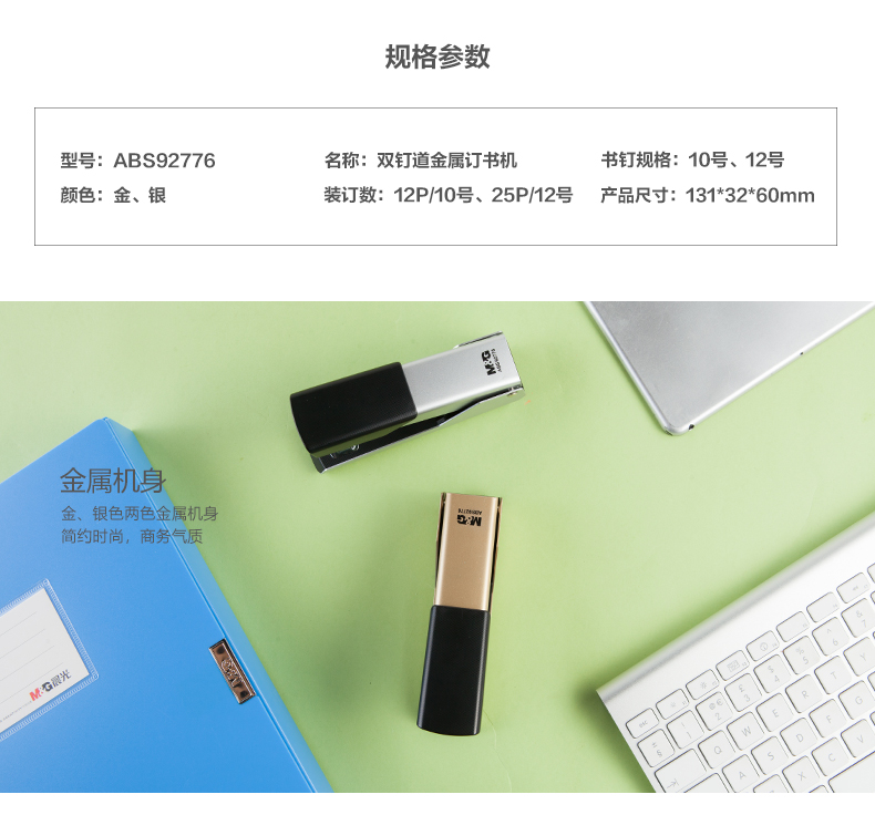 商品名称:晨光双钉道金属订书机(银色)ABS92776