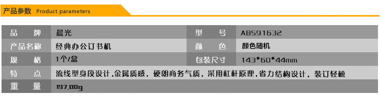 商品名称:晨光12#订书机经典办公ABS91632