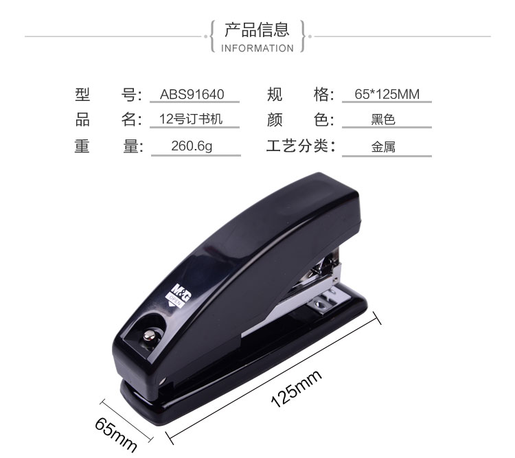 商品名称:晨光12#订书机省力型ABS91640
