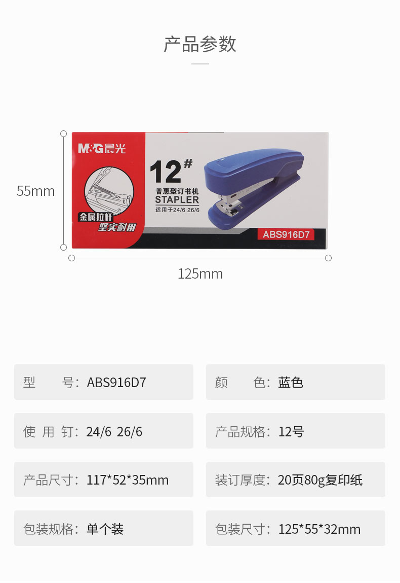 商品名称:晨光普惠型12号订书机黑色ABS916D7