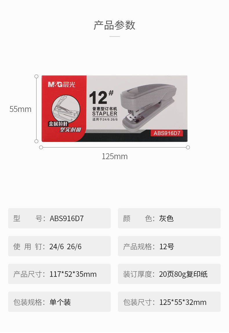 商品名称:晨光普惠型12号订书机灰色ABS916D7