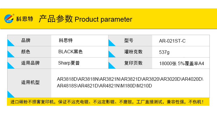 商品名称:科思特 AR021ST-C碳墨粉盒 适用夏普AR3818D 3821N 3820 3020 4020D 4818S 4821 M180D