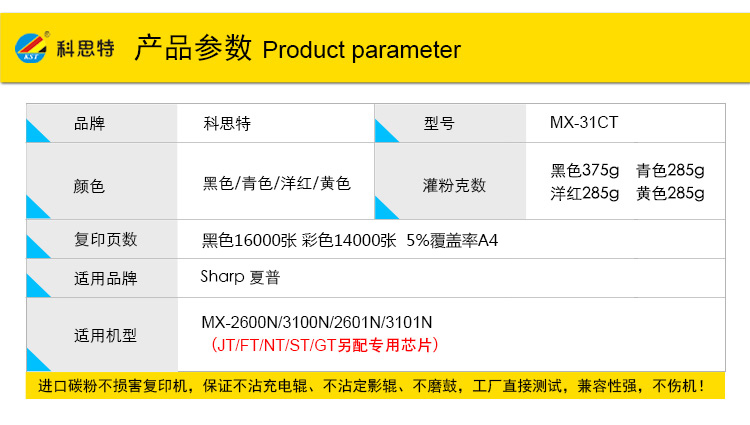 商品名称:科思特 MX-31CT粉盒 适用夏普复印机MX-2600N 3100N 2601N 3101N 黑色 BK