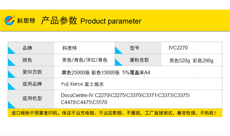 商品名称:科思特 IVC2270粉盒 适用施乐复印机 C3370 C4470 C4475 C5570 黑色BK