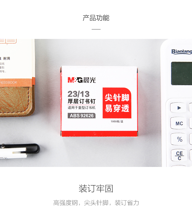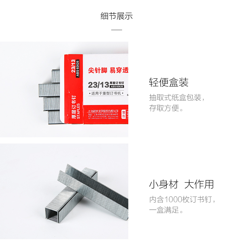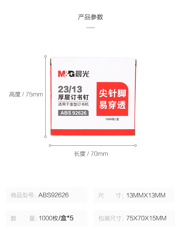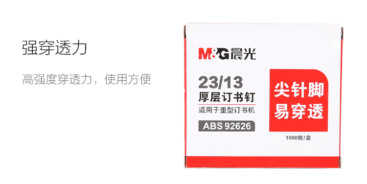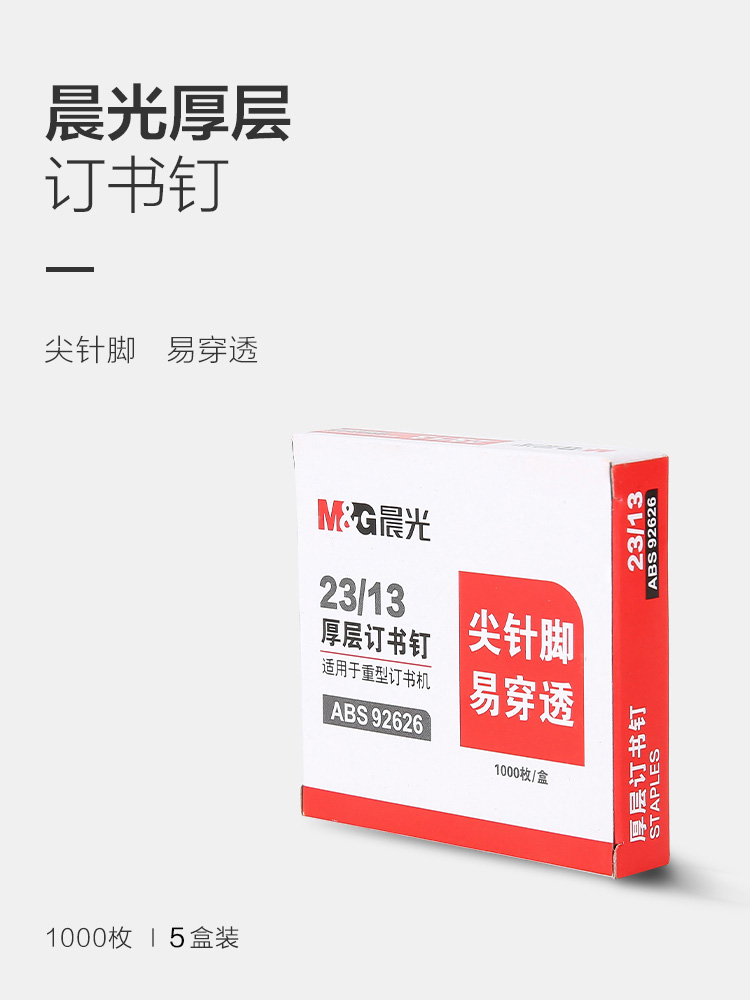 商品名称:晨光23/13*5盒厚层订书钉ABS92626