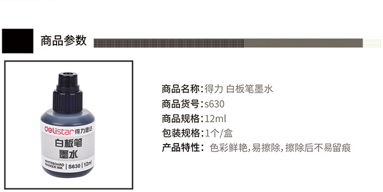 商品名称:得力(deli) 可加墨白板笔补充用墨水S630 12ml蓝色