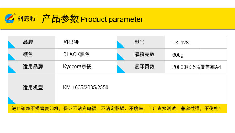 商品名称:科思特 TK-428 粉盒 适用京瓷KM-1635/2035/2550 黑色